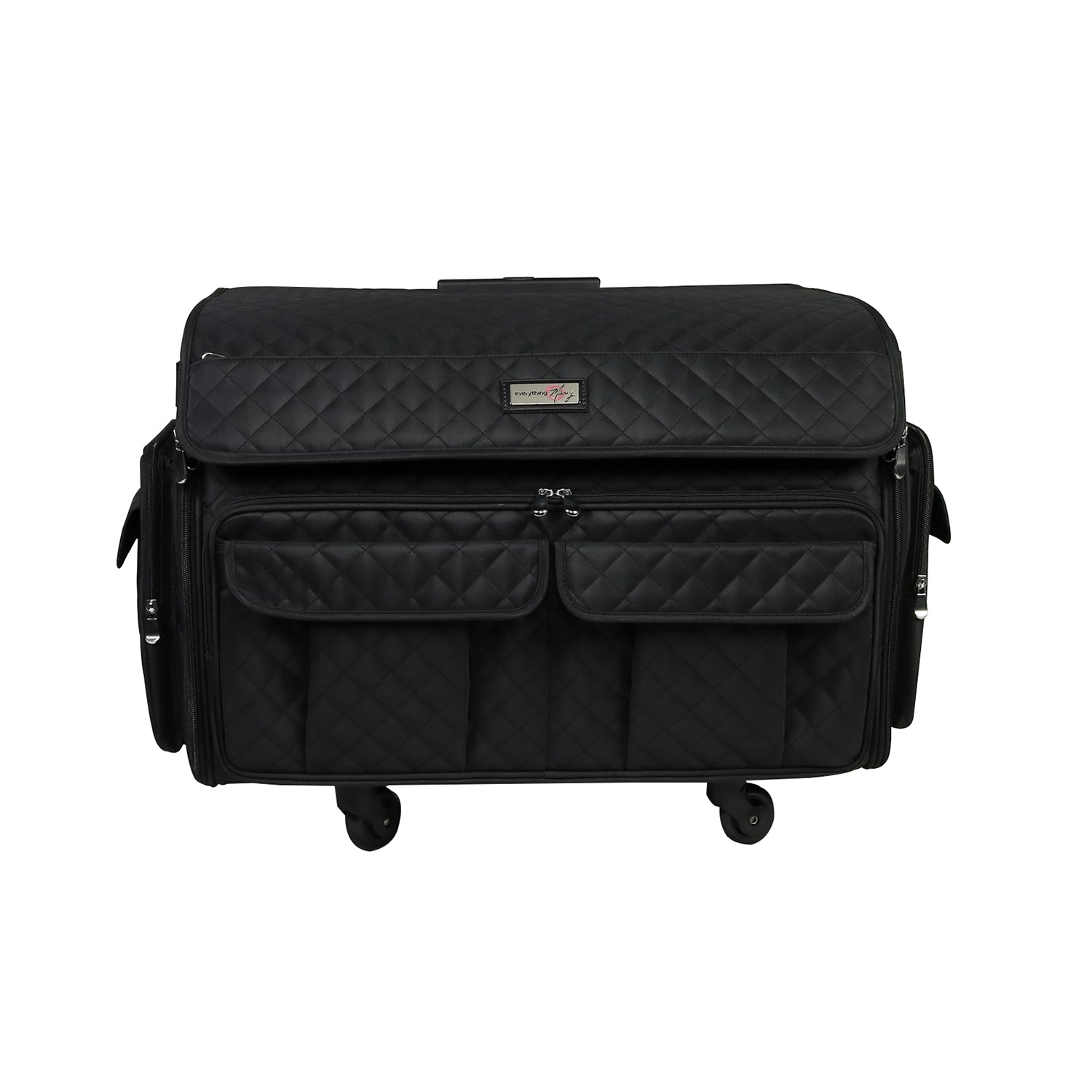 Everything Mary 4 Wheels Xl Collapsible Deluxe Sewing Machine Trolley Black Quilted Rolling Carrying Storage Case For Large Brother Singer Bernina Machines Universal Travel Tote Bag